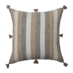 This 100% cotton silk-screen print will bring a casual feel to any decor. The tan and charcoal striped pattern is accentuated by the highly textured base cloth and eight coordinating, commingled tassels. Additional features of this throw pillow include a cotton canvas back, a knife edge seam for a clean finish and a recycled polyester fiber fill insert with a zipper closure.
