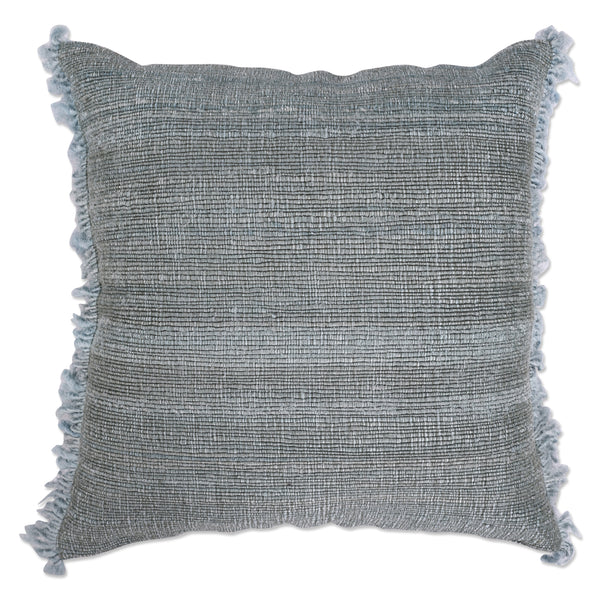 The Pillow Perfect Throw Pillow in Aravalli Blue is simple but with a decidedly boho feel. It will instantly add texture and depth to your home decor with intricately woven yarns in shades of blue and gray. Along the sides is soft hand-pulled fringe making each pillow unique. Enjoy on your sofa, chaise lounge, or bed. The plush recycled polyester fill will maintain the pillow's shape for years to come. Spot clean or hand wash only as needed.