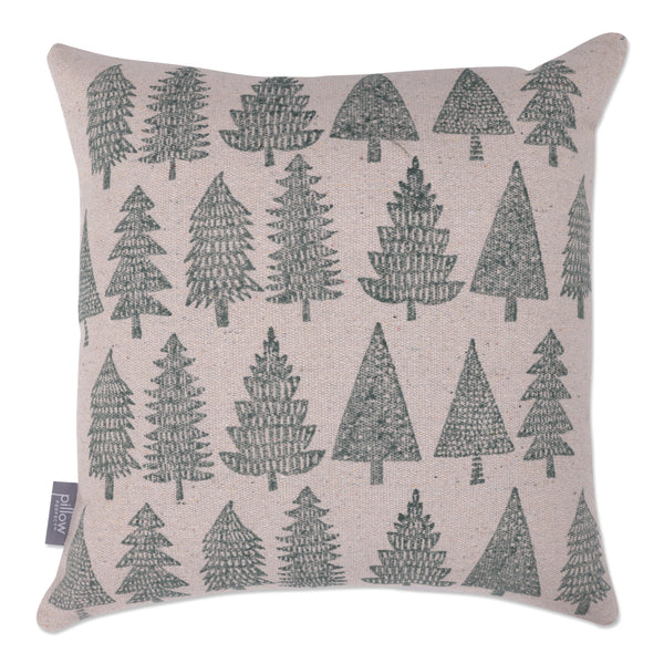 Christmas trees don't always have to have lights and glitzy ornaments. The Pillow Perfect Christmas/Holiday Throw Pillow in Woodland Trees Natural features charming rows of simple evergreen trees. Hand block-printed in dark green on natural cotton dhurrie, this pillow would be right at home with your holiday decor. The plush recycled polyester fill insert will maintain the pillow's shape for years to come. Spot clean or hand wash only as needed.
