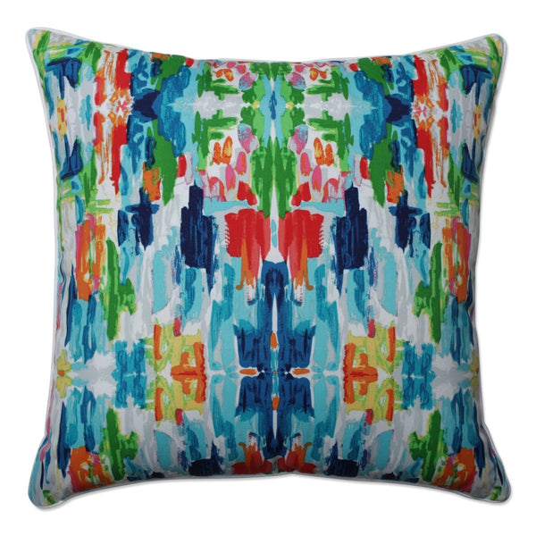 Embrace color with this outdoor floor pillow. Its fresh and vibrant kaleidoscopic print will give your poolside or deck a magnificent new look. Bright shades of red, pink, yellow, green and blue stream across a white ground to deliver an abstract painterly touch. Additional features of this outdoor floor pillow include a white contrast welt cord for a clean finish and recycled polyester fiber fill with a sewn seam closure. Also suitable for indoor use.
