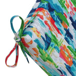 Embrace color with this outdoor chaise lounge cushion. Its fresh and vibrant kaleidoscopic print will give your poolside or deck a magnificent new look. Bright shades of red, pink, yellow, green and blue stream across a white ground to deliver an abstract painterly touch. Additional features of this outdoor chaise lounge cushion include 14" ties to secure the cushion to your furniture, square corners and recycled polyester fill with a sewn seam closure.