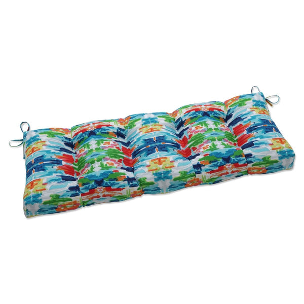 Embrace color with this outdoor bench cushion. Its fresh and vibrant kaleidoscopic print will give your poolside or deck a magnificent new look. Bright shades of red, pink, yellow, green and blue stream across a white ground to deliver an abstract painterly touch. Additional features of this outdoor bench cushion include tufted detailing, 14" ties and recycled polyester fiber fill with a sewn seam closure. Also suitable for indoor use.