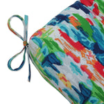 Embrace color with this large outdoor bench cushion. Its fresh and vibrant kaleidoscopic print will give your poolside or deck a magnificent new look. Bright shades of red, pink, yellow, green and blue stream across a white ground to deliver an abstract painterly touch. Additional features of this large outdoor bench cushion include tufted detailing, 14" ties and recycled polyester fiber fill with a sewn seam closure. Also suitable for indoor use.