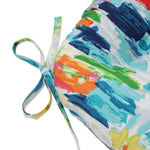Embrace color with this set of two outdoor tufted chair pads. Their fresh and vibrant kaleidoscopic print will give your poolside or deck a magnificent new look. Bright shades of red, pink, yellow, green and blue stream across a white ground to deliver an abstract painterly touch. Additional features of these outdoor tufted chair pads include 14" ties to secure the cushions to your furniture and recycled polyester fiber fill with sewn seam closures. Also suitable for indoor use in kitchen and dining areas.