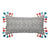 Bring worldly charm to any room when you accent with this oversized lumbar pillow. Its unique look is intricately elegant in a geometric pattern that is block printed by hand on heavily textured cotton Dhurrie cloth. Its striped fabric pattern is in black and gray on a natural ground. For a colorful touch, this pillow is trimmed with seven tassels in shades of coral, peach, aqua and teal, each secured with a red bead on each corner. Additional features of this lumbar pillow include a knife edge seam for a clean finish and a recycled polyester fiber fill insert with a zipper closure.