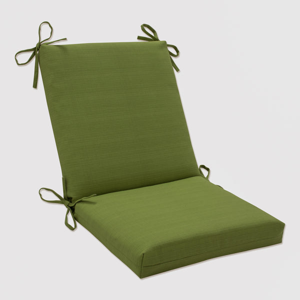 Introduce a gorgeous green on your porch with this versatile outdoor chair cushion. Its solid green pattern easily coordinates with other decor and accents any outdoor area with a fresh, natural look. The durable polyester fabric has a linen-like texture and is fade resistant. Additional features of this outdoor chair cushion include square corners, 14" ties and recycled polyester fill with a sewn seam closure. Also suitable for indoor use.
