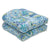 The captivating beauty of this set of two outdoor tufted wicker chair cushions delivers elegance. Their artful pattern of paisley and floral design is in painterly style with shades of blue, green and yellow on an off-white linen textured ground. Additional features of these outdoor tufted wicker chair cushions include recycled polyester fiber fill and sewn seam closures. Also suitable for indoor use.