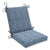 The rustic appeal of this outdoor chair cushion is perfect for creating a casual outdoor escape. With a dimensional look, its eye-catching herringbone pattern is in an off-white set against a dark blue ground. Additional features of this outdoor chair cushion include square corners, 14" ties to secure the cushion to your furniture and recycled polyester fill with a sewn seam closure.