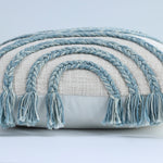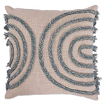 The textured details of the Pillow Perfect Throw Pillow in Abstract Circles Blue will instantly create depth and interest in your favorite living space. Featuring thick hand-braided embellishments in alternating shades of blue yarns, each half circle is completed with a lush tassel. The plush recycled polyester fill will maintain the pillow's shape for years to come. Spot clean or hand wash only as needed.