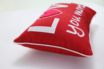 Boldly express your love any time of the year to celebrate family, romance, or friendships. Featuring appliqued & embroidered detailing, this lumbar pillow's dramatic sentiment is notated on a crisp red ground. Take notice of the bright pink heart embroidered in boucle yarn that cleverly replaces the letter "O" and provides eye-catching dimension. Additional features include a coordinating white welt cord for a clean finish and a pillow insert containing recycled polyester fiber fill with a zipper closure.