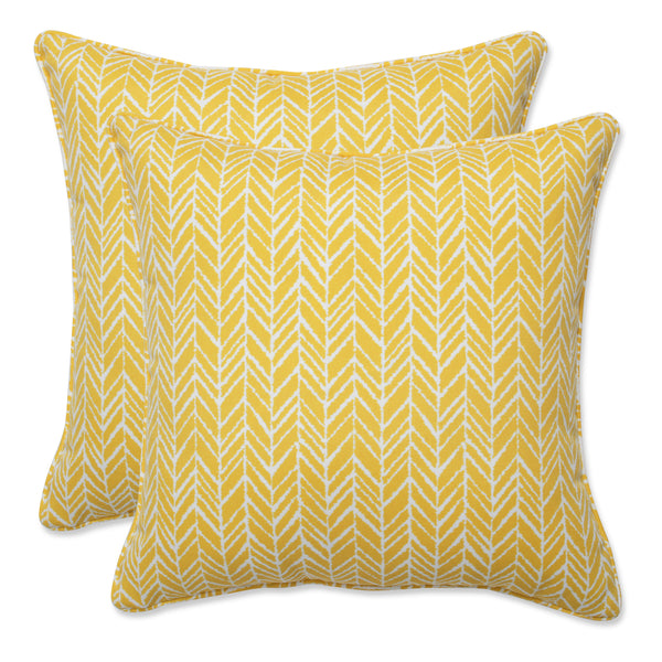 The sunny appeal of this set of two outdoor throw pillows is perfect for creating a cheerful outdoor escape. With a dimensional look, their eye-catching off-white herringbone pattern is set against a lovely shade of yellow. Additional features of these outdoor throw pillows include self welt cords for a beautiful finish and recycled polyester fiber fill with sewn seam closures. Also suitable for indoor use.