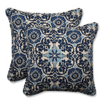 Timeless design refreshes the look of any outdoor setting with this set of two outdoor decorative pillows. Their damask pattern is full of intricate, repeating floral elements in shades of indigo, cobalt and light blue set on an off-white ground. Made of 100% polyester fade-resistant fabric. Additional features of these outdoor decorative pillows include self welt cords for a clean finish and recycled polyester fiber fill with sewn seam closures. Also suitable for indoor use.