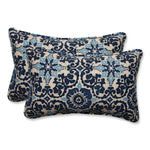 Timeless design refreshes the look of any outdoor setting with this set of two outdoor lumbar pillows. Their damask pattern is full of intricate, repeating floral elements in shades of indigo, cobalt and light blue set on an off-white ground. Made of 100% polyester fade-resistant fabric. Additional features of these outdoor lumbar pillows include self welt cords for a clean finish and recycled polyester fiber fill with sewn seam closures. Also suitable for indoor use.