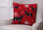 Since deer represent a spirit of gentleness, this Christmas throw pillow will bring a peaceful aura to your holiday setting. The Christmas red ground creates a nice backdrop to the buck silhouettes and falling snowflakes. The design is knitted on both pillow sides. Features a knife edge seam, a recycled polyester fiber fill insert and a zippered closure.
