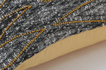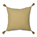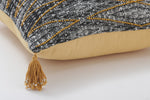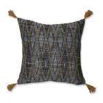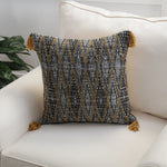 Inspired by global influences, this decorative pillow is full of rich textures and artful detail. The intricate gold beadwork creates bold geometric shapes atop a dramatic black and off-white woven, textured ground. Corner tassels with pearlized beading complete the look. Additional features include a knife edge seam for a clean finish, a coordinating solid color gold back, and recycled polyester fiber fill insert with a zipper closure. 100% cotton fabric.