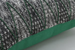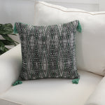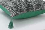 Inspired by global influences, this decorative pillow is full of rich textures and artful detail. The intricate green beadwork creates bold geometric shapes atop a dramatic black and off-white woven, textured ground. Corner tassels with pearlized beading complete the look. Additional features include a knife edge for a clean finish, a coordinating solid color green back, and recycled polyester fiber fill insert with a zipper closure. 100% cotton fabric.