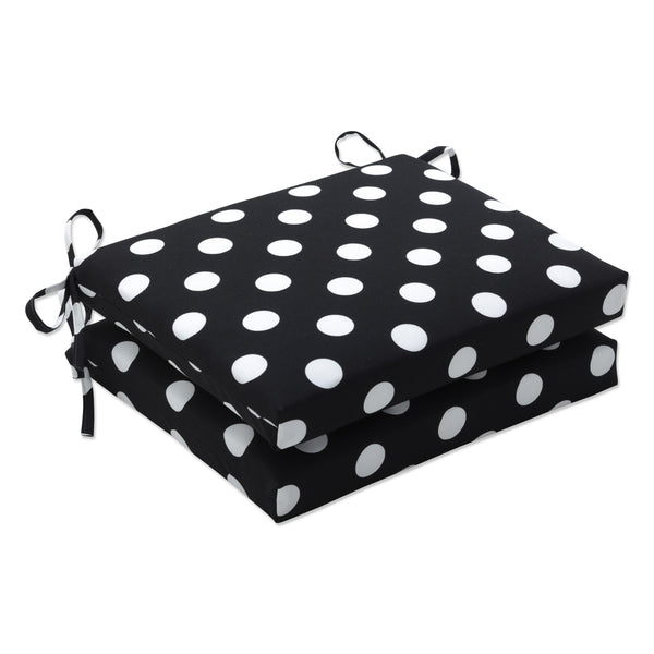 Riveting and timeless, the polka dot pattern of this set of two outdoor seat cushions adds an exciting touch of elegance and playful energy to any outdoor area. In classic black and white polka dots, their fabric is fade resistant. Additional features of these outdoor seat cushions include square corners, 14" ties and recycled polyester fill with zippered closures for easy removal. Also suitable for indoor use.