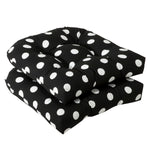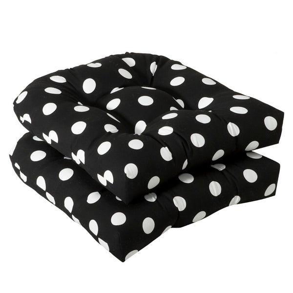 Riveting and timeless, the polka dot pattern of this set of two outdoor tufted wicker chair cushions adds an exciting touch of elegance and playful energy to any outdoor area. In classic black and white polka dots, their fabric is fade resistant. Additional features of these outdoor tufted wicker chair cushions include recycled polyester fiber fill and sewn seam closures. Also suitable for indoor use.