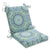 Accent your patio with the intricate, artful elegance of this outdoor chair cushion. Its detailed Suzani print pattern with delicately embellished circles is in enchanting shades of blue, green and yellow set on a white ground. Additional features of this outdoor chair cushion include square corners, 14" ties and recycled polyester fill with a sewn seam closure.