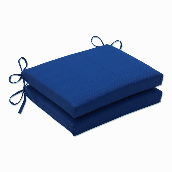 The inviting style of this set of two outdoor seat cushions brings a nautical look and feel to any outdoor area. Their brilliant blue polyester fabric is sure to hold up with fade resistance and durability. Additional features of these outdoor seat cushions include square corners, 14" ties and recycled polyester fill with zippered closures for easy removal. Also suitable for indoor use.