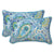 The captivating beauty of this set of two outdoor lumbar pillows delivers elegance. Their artful pattern of paisley and floral design is in painterly style with shades of blue, green and yellow on an off-white linen textured ground. Additional features of these outdoor lumbar pillows include coordinating aqua blue welt cords for a clean finish and recycled polyester fiber fill with sewn seam closures. Also suitable for indoor use.