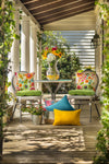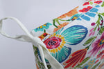 The flower garden print of this outdoor bench cushion brings a new look to your patio decor. Inspired by a painterly Scandinavian print, flowers dance across the fabric in bright shades of pink, orange, turquoise, yellow and green. Additional features of this outdoor bench cushion include square corners, 14" ties and recycled polyester fill with a zippered closure for easy removal. Also suitable for indoor use.