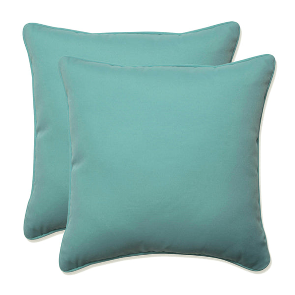 Create a bright, cool escape with this set of two outdoor throw pillows. With a simple look, the radiance of the refreshing shade of aqua fabric delivers fresh style with a sense of calmness. Made of 100% polyester. Additional features of these outdoor throw pillows include self welt cords for a beautiful finish and recycled polyester fiber fill with sewn seam closures. Also suitable for indoor use.