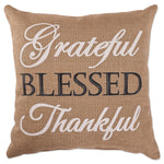 Have you counted your blessings lately? The Pillow Perfect Thanksgiving Indoor throw Pillow in Many Thanks features "Grateful, Blessed, and Thankful" messaging that serves as a reminder to appreciate all that we have, especially as we move into the holiday season. White print and gray embroidery stands out against 100% jute fabric, and is a clean and modern alternative to traditional autumn decor. The recycled polyester fill is plush and keeps the pillow's shape so you can enjoy it year after year. Spot clean as needed using mild detergent.