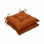 Spice up the look of your patio or porch with this set of two outdoor tufted chair cushions in the rich color of cinnamon. Their highly textured fabric is durable, fade resistant and in a light shade of brown, which coordinates with other decor. Additional features of these outdoor tufted chair cushions include 14" ties to secure the cushions to your furniture and recycled polyester fiber fill with sewn seam closures. Also suitable for indoor use.