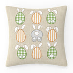 Spring is here! The Pillow Perfect Easter Indoor/Outdoor Reversible Throw Pillow in Hello Spring Natural features elements of the spring season. A cheerful green & white gingham "Hello Spring" message stands out against a natural ground, and the "S" is dressed as a bunny while the "i" is shaped as a carrot. On the flip side of this reversible pillow are three rows of bunny bottoms disguised as Easter eggs, decorated in ticking stripes and gingham checks. Greet guests by displaying this playful pillow on an entry bench, covered porch, or back patio. The plush recycled polyester fill insert will maintain the pillow’s shape for years to come. Spot clean or hand wash only as needed.