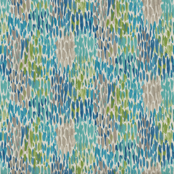 This pattern, with its painterly feel, was inspired by rain drops. Perfectly balanced, it is colored in tranquil shades of turquoise, green, blue and gray against a soft white background.