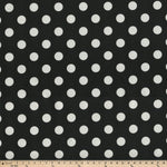 Riveting and timeless, the polka dot pattern of this outdoor polyester fabric, sold by the yard, adds an exciting touch of elegance and playful energy to any outdoor area. The fade-resistant polka dot pattern is in black and white, perfect for refreshing your patio with a classic pattern that can be paired with both neutrals and brights. Suitable for indoor use.