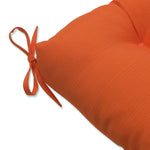 Create a sunny look for your outdoor oasis with this outdoor bench cushion. Its clean style in a bright, tropical shade of solid orange is bold and easily coordinates with other decor. Polyester fabric is durable and fade resistant. Additional features of this outdoor bench cushion include tufted detailing, 14" ties and recycled polyester fiber fill with a sewn seam closure. Also suitable for indoor use.