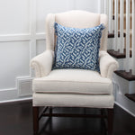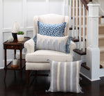This 100% cotton hand-block print is created using an age-old Dabu mud-resist printing technique. As relevant today in its appeal as it was centuries ago, this decorative pillow is colored using pure vegetable dyes that give it its blue hue. Completing the look is a 1-3/4" fringe, which adds dimensional interest. Additional features of this throw pillow include a cotton canvas back and a recycled polyester fiber fill insert with a zipper closure.