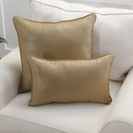 This throw pillow makes a brilliant accent for any seating area. With glamour, this one wows with an impressive metallic texture that picks up the light and glistens in splendor. The gold metallic color easily complements any decor. Additional features include a self welt cord and recycled polyester fiber fill with a sewn seam closure.