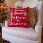 It's all glam and merry as ever! A striking display of shimmering golds, metallic silvers, and soft shades of white, this Christmas throw pillow cover (pillow insert sold separately) is all dressed up for that holiday party. Appliqued and embroidered, the festive sentiment and ornate ornaments make a dynamic duo atop the Christmas red ground creating captivating dimension and alluring interest. Additional features of this throw pillow cover include a coordinating metallic silver welt cord for a clean finish and a zipper closure. The 18" x 18" throw pillow insert is sold separately. Simply zipper this insert into the pillow cover for a perfectly shaped pillow.
