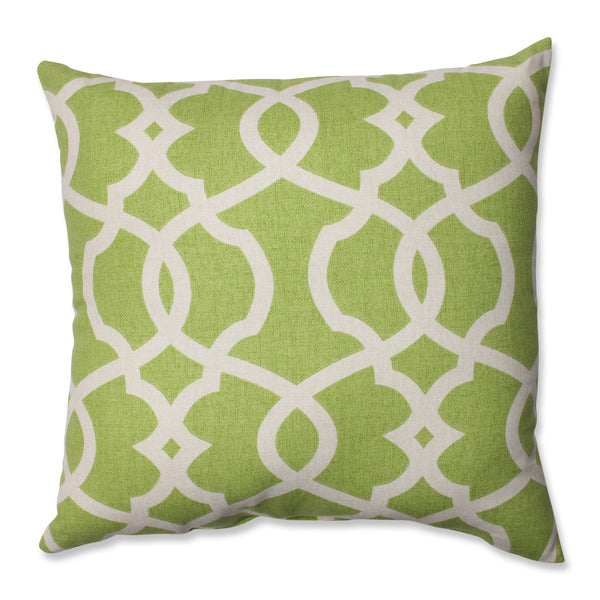 Add sophistication and luxury to your home's decor with this green and off-white damask-printed throw pillow. Its bright shade of green lightens up any room or furniture piece and creates a cheery vibe. With its intertwining bold pattern, this pillow is easily paired with contrasting prints. Additional features of this throw pillow include a knife edge seam for a clean finish and recycled polyester fiber fill with a sewn seam closure.