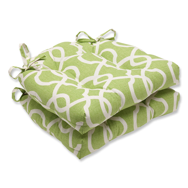Add sophistication and luxury to your home's decor with this set of two green and off-white damask-printed tufted chair pads. Their bright shade of green lightens up any room or furniture piece and creates a cheery vibe. With their intertwining bold pattern, these cushions are easily paired with contrasting prints. Additional features of these tufted chair pads include 14-inch ties to secure the cushions to your furniture and recycled polyester fiber fill with sewn seam closures.