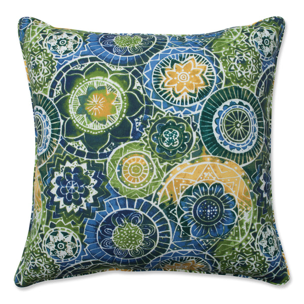 Get swept away with the artistic mandalas of this charming outdoor floor pillow. Delicate, white mandala designs are set on a watercolor ground in shades of yellow, blue and green. Fabric is durable and fade resistant. Additional features of this outdoor floor pillow include a self welt cord for a clean finish and recycled polyester fiber fill with a sewn seam closure. Also suitable for indoor use.