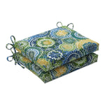 Get swept away with the artistic mandalas of this set of two charming outdoor seat cushions. Delicate, white mandala designs are set on a watercolor ground in shades of yellow, blue and green. Fabric is durable and fade resistant. Additional features of these outdoor seat cushions include square corners, 14" ties and recycled polyester fill with zippered closures for easy removal. Also suitable for indoor use.