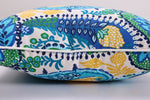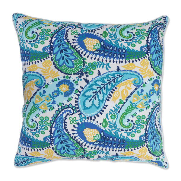 Amalia Paisley Blue is a classic paisley print, but in a modern, bold color palette. Featuring swirls of paisley in complimentary turquoise, green, yellow, and shades of blue, this print is both vibrant and fun. Enjoy these brights in your favorite outdoor space - poolside, while dining alfresco, or soaking up the sun with a good book. Amalia Paisley Blue was created to be paired with a number of other Pillow Perfect patterns and solids and is available in a variety of pillow/cushion shapes and sizes.