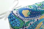 Amalia Paisley Blue is a classic paisley print, but in a modern, bold color palette. Featuring swirls of paisley in complimentary turquoise, green, yellow, and shades of blue, this print is both vibrant and fun. Enjoy these brights in your favorite outdoor space - poolside, while dining alfresco, or soaking up the sun with a good book. Amalia Paisley Blue was created to be paired with a number of other Pillow Perfect patterns and solids and is available in a variety of pillow/cushion shapes and sizes.