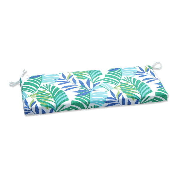 Large abstract tropical foliage in bright shades of blue, green and turquoise pops from an off-white ground with this outdoor bench cushion. The pattern is printed on outdoor fade-resistant polyester fabric that has a slub texture for added dimension. Additional features of this outdoor bench cushion include square corners, 14-inch ties and recycled polyester fill with a zippered closure for easy removal. Also suitable for indoor use.