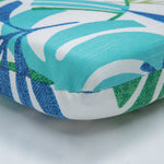 Large abstract tropical foliage in bright shades of blue, green and turquoise pops from an off-white ground with this set of two outdoor seat cushions. The pattern is printed on outdoor fade-resistant polyester fabric that has a slub texture for added dimension. Additional features of these outdoor seat cushions include round corners, 14-inch ties and recycled polyester fill with sewn seam closures. Also suitable for indoor use.
