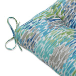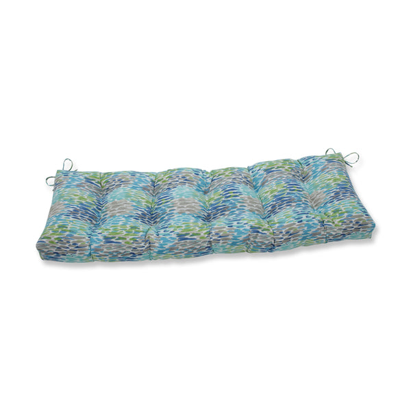 Enliven your patio decor with this irresistible large outdoor bench cushion. Its contemporary painterly pattern is inspired from raindrops. In tranquil shades of turquoise, green, blue and gray, the design is set against an off-white ground. Additional features of this large outdoor bench cushion include tufted detailing, 14" ties and recycled polyester fiber fill with a sewn seam closure. Also suitable for indoor use.