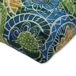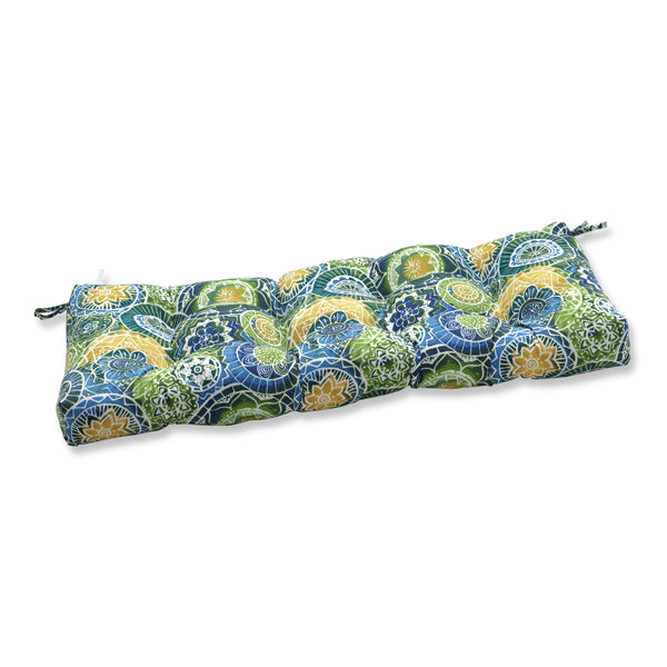 Get swept away with the artistic mandalas of this charming outdoor bench cushion. Delicate, white mandala designs are set on a watercolor ground in shades of yellow, blue and green. Fabric is durable and fade resistant. Additional features of this outdoor bench cushion include tufted detailing, 14" ties and recycled polyester fiber fill with a sewn seam closure. Also suitable for indoor use.