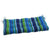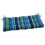 This outdoor bench cushion features an unbalanced stripe printed in bright shades of blue, green and white. It will make a striking statement in any outdoor space. Additional features of this outdoor bench cushion include tufted detailing, 14" ties and recycled polyester fiber fill with a sewn seam closure. Also suitable for indoor use.