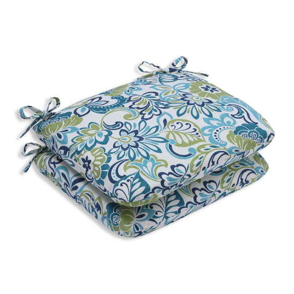 The leaves, blooms and paisley pattern of this set of two outdoor seat cushions bestow elegance in your outdoor oasis. In harmonious shades of blue and green, the design is set on an off-white ground. Their textural linen fabric is fade resistant. Additional features of these outdoor seat cushions include rounded corners, 14" ties and recycled polyester fill with sewn seam closures. Also suitable for indoor use.