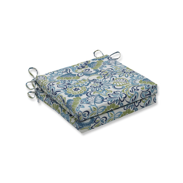The leaves, blooms and paisley pattern of this set of two outdoor oversized seat cushions bestow elegance in your outdoor oasis. In harmonious shades of blue and green, the design is set on an off-white ground. Their textural linen fabric is fade resistant. Additional features of these outdoor oversized seat cushions include square corners, 14" ties and recycled polyester fill with zippered closures for easy removal. Also suitable for indoor use.