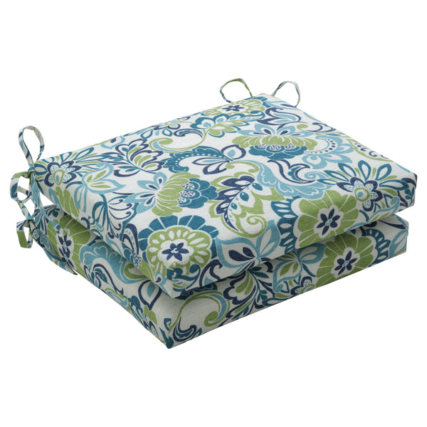 The leaves, blooms and paisley pattern of this set of two outdoor seat cushions bestow elegance in your outdoor oasis. In harmonious shades of blue and green, the design is set on an off-white ground. Their textural linen fabric is fade resistant. Additional features of these outdoor seat cushions include square corners, 14" ties and recycled polyester fill with zippered closures for easy removal. Also suitable for indoor use.